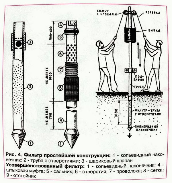 Il existe d'autres variétés de ces sources d'approvisionnement en eau. Il n'est absolument pas nécessaire de forer à une grande profondeur : par exemple, vous pouvez faire un puits jusqu'à 20 mètres si vous construisez un puits abyssin. C'est fait de cette façon.