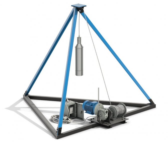 Le treuil est un bloc de levage à travers lequel passe un câble, auquel un verre ou une écope est attaché. Si vous le souhaitez, il peut être fait à la main. Pour la fabrication, vous pouvez utiliser des bûches, au centre desquelles un tuyau métallique ou une barre d'acier est obstrué du côté de l'extrémité pour donner une plus grande résistance.Avant de conduire une pièce métallique, vous pouvez percer des trous aux extrémités de la bûche avec un diamètre inférieur au diamètre de la pièce. Cela facilitera l'entraînement de l'essieu et le rendra plus sûr. Pour éviter le retournement, des oreilles spéciales sont soudées à l'une des extrémités de l'axe sortant de la grume. Une poignée est soudée à l'autre extrémité, qui peut être fabriquée à partir d'un morceau de tuyau, lui donnant la forme de la lettre "G". La porte est fixée entre les crémaillères du cadre, un câble est enroulé autour de celle-ci lors de l'abaissement ou de la montée de l'outil du puits, frappant le verre et son extraction ultérieure remplie de terre.