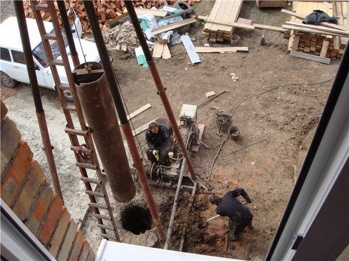 - il est possible en même temps avec le forage de fabriquer et de poser les parois du puits en béton ou en acier, qui sont nécessaires pour retenir la roche afin d'empêcher son effondrement.