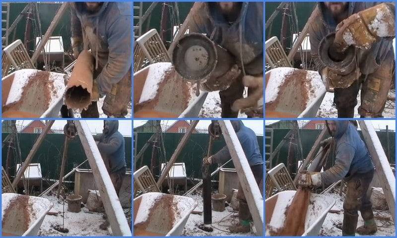 Seule une telle monture, comme sur la photo ci-dessus, est très peu fiable. Après quelques coups, votre projectile peut se détacher et vous devrez décider comment sortir la écope du trou. La meilleure option de montage est une pièce, sans coutures ni torsions. Comment faire cela deviendra clair si vous regardez la vidéo. Soit dit en passant, il y a une chose importante ici - comment fabriquer des crochets pour que, si nécessaire, vous puissiez retirer la écope du puits.