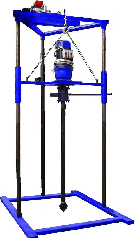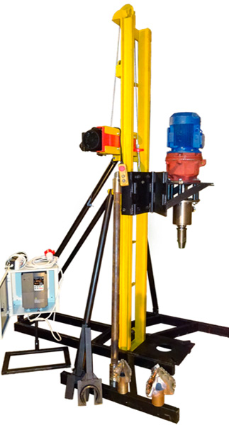 La foreuse hydraulique doit avoir un châssis qui vous permet de monter / descendre le moteur, auquel la perceuse est reliée par un émerillon. L'eau est également fournie par le pivot dans la colonne.