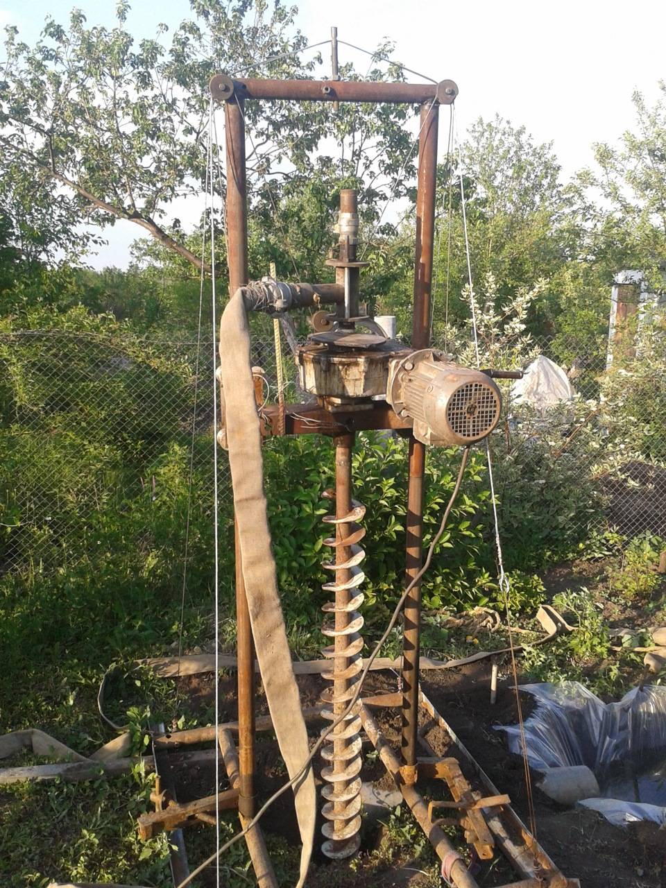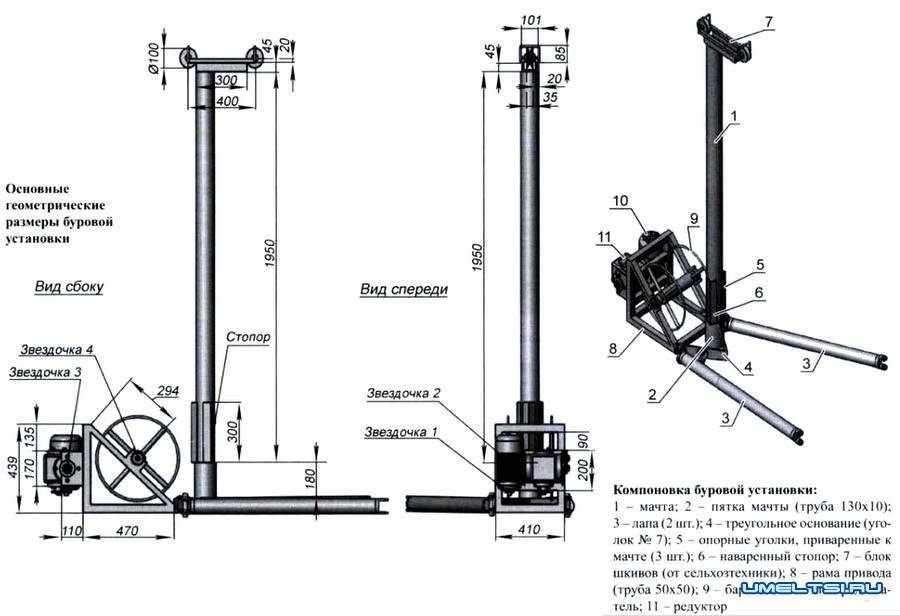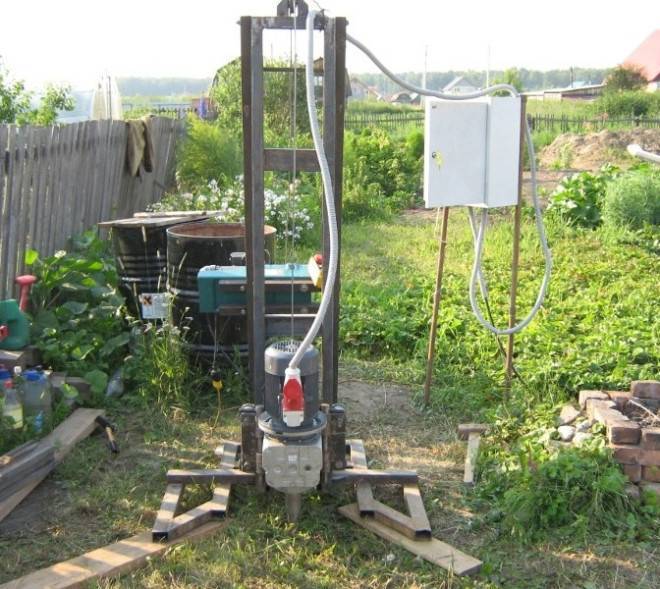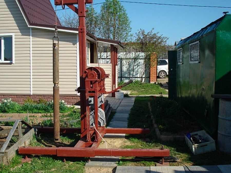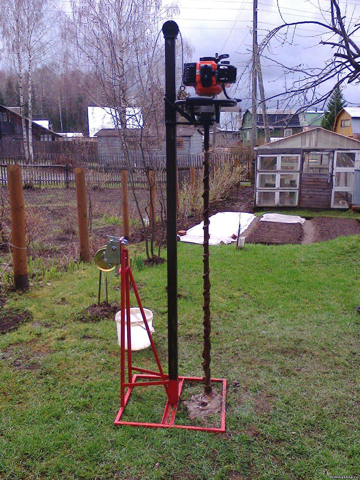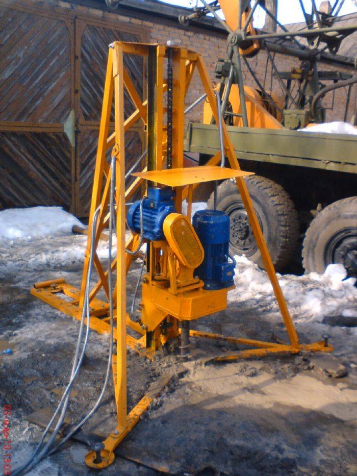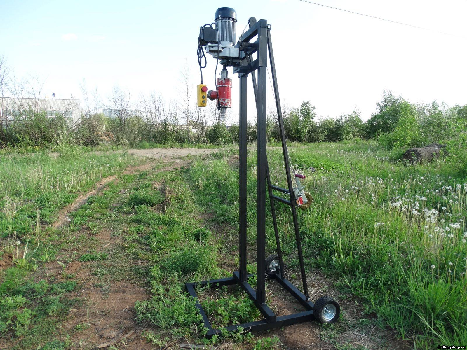 En cours de forage, la tige devra être augmentée périodiquement. Avec une augmentation de la longueur de l'outil, la masse de la structure augmentera également de manière significative, il deviendra très difficile de la gérer manuellement.Pour un levage pratique du mécanisme, utilisez un treuil en métal ou en bois durable.