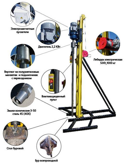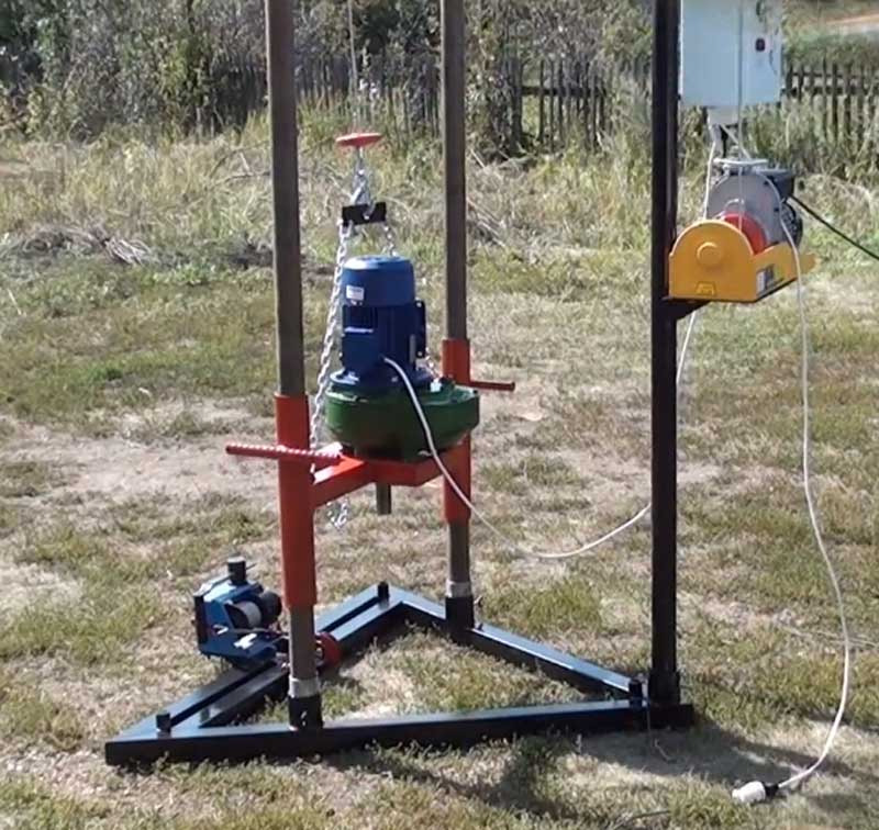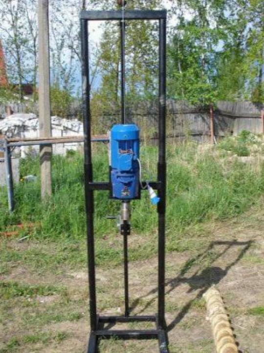 En cours de forage, la tige devra être augmentée périodiquement. Avec une augmentation de la longueur de l'outil, la masse de la structure augmentera également de manière significative, il deviendra très difficile de la gérer manuellement. Pour un levage pratique du mécanisme, utilisez un treuil en métal ou en bois durable.