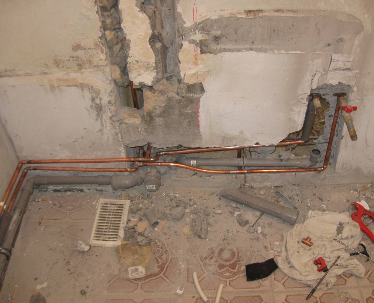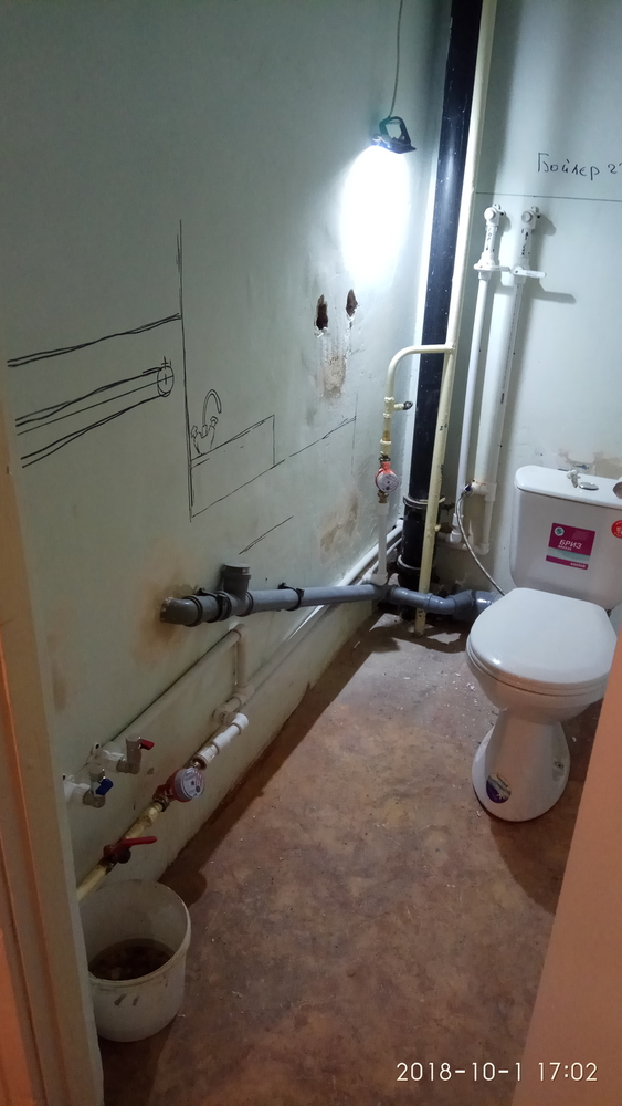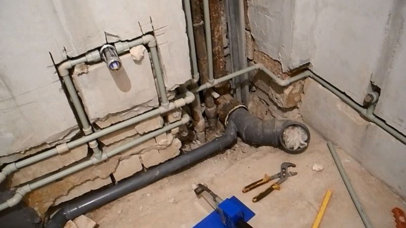 Les travaux commencent par l'installation d'un tuyau vertical. Si une traverse reste dans le sol en béton, la possibilité d'installer de nouvelles communications est envisagée, mais en tenant compte du matériau de ces produits. Tout d'abord, une installation approximative est faite. Les produits sont placés à leur place, en tenant compte du dessin préalablement établi. Cela évitera les erreurs lors du travail avec les communications et réduira la consommation de matériel, car les erreurs sont détectées à ce stade.