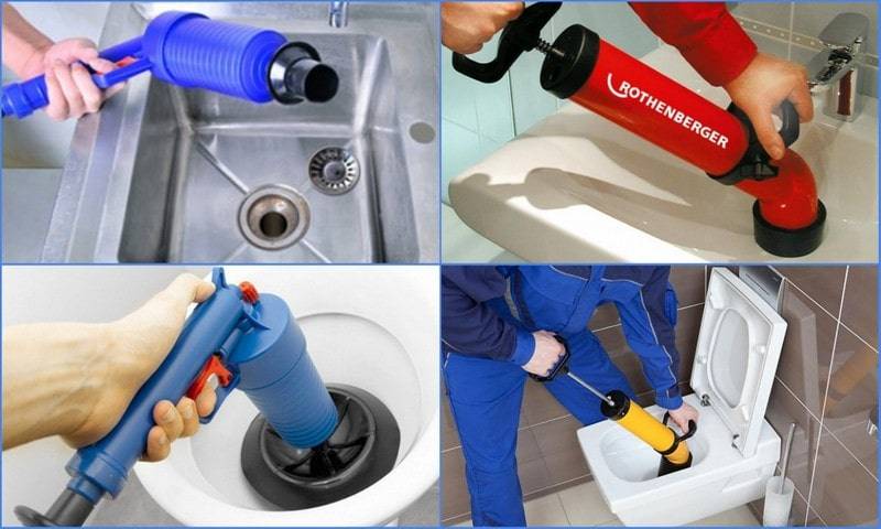 L'utilisation du piston est facile. Dans un évier ou dans un bain avec de l'eau stagnante, il est installé avec une buse en caoutchouc sur le drain et appuyé sur la poignée. Puis - soulevez-le brusquement vers eux-mêmes.