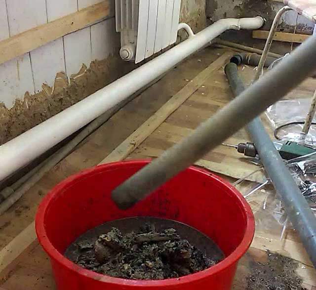Ensuite, retirez simplement ce fil avec les débris. Le câble peut être changé par tension. Dans ce cas, le câble devient élastique, ce qui entraîne la destruction complète de la stagnation accumulée des débris. Le nettoyage des canalisations d'égout de vos propres mains n'étant pas un travail très propre, vous devez préparer à l'avance une toile cirée en la posant sur l'endroit où les travaux seront effectués. Et ne portez pas non plus de vêtements propres, car les éclaboussures d'eau sale sont également inévitables.