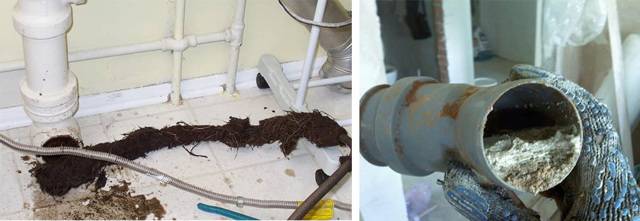 Là, d'autres débris et graisses se déposeront sur cet article. Ce sont eux qui provoqueront la croissance d'un gros bouchon, qui n'est pas si facile à percer. Dans une maison privée, la cause peut être la déformation d'un tuyau adjacent à l'égout principal ou la pression externe d'un gros objet.
