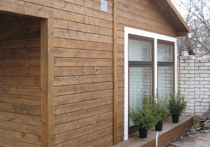 C'est la même surface préfabriquée que la doublure, mais légèrement différente en apparence. Il s'installe également horizontalement, seuls les joints apparents sont pratiquement invisibles. Après l'installation finale, cela ressemble à un mur en bois profilé. Il est fabriqué à partir d'épicéa, de pin, de cèdre ou de mélèze, en raison de la nature résineuse de ces essences, il est assez durable.