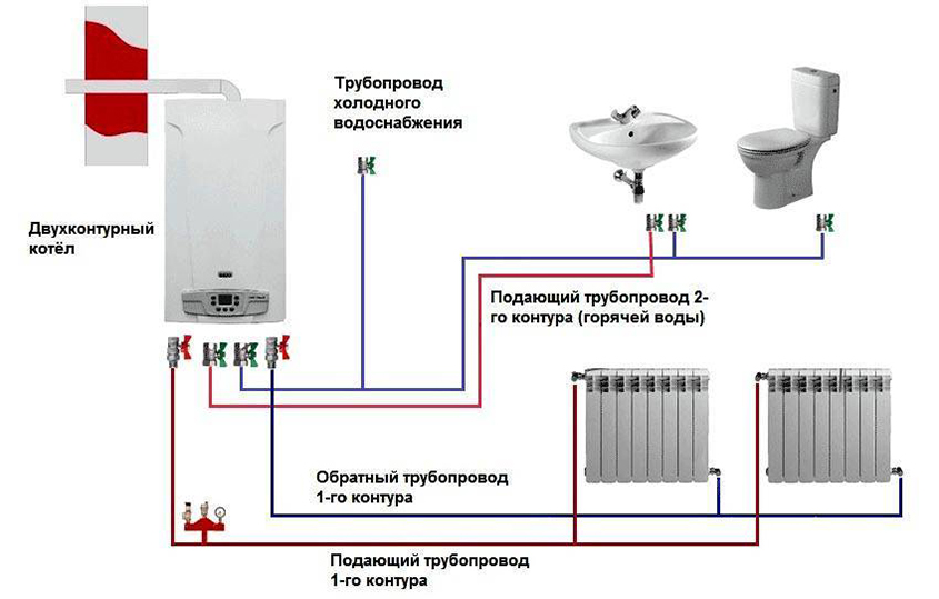 - Le nombre de circuits desservis. Si le chauffage des locaux et l'alimentation en eau chaude sont nécessaires, une chaudière à double circuit avec une paire d'échangeurs de chaleur est choisie. Si l'eau chaude n'est pas nécessaire, une chaudière à circuit unique suffit. Les nouveaux chauffages à double circuit ont un mode hiver/été.