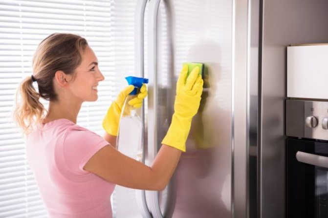 - Réfrigérateur en acier inoxydable. Pour conserver son aspect présentable, vous devez oublier les produits de nettoyage contenant du chlore, de l'alcool ou de l'acide. Pour un réfrigérateur en acier inoxydable, des produits d'entretien spéciaux pour les appareils électroménagers seront une solution idéale. Aussi, des nettoyants pour vitres (sans alcool) ou des chiffons doux en microfibre viendront à la rescousse.