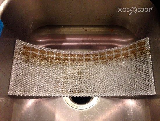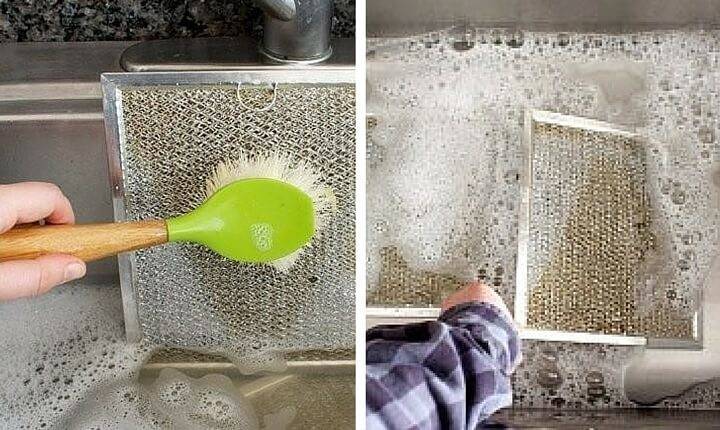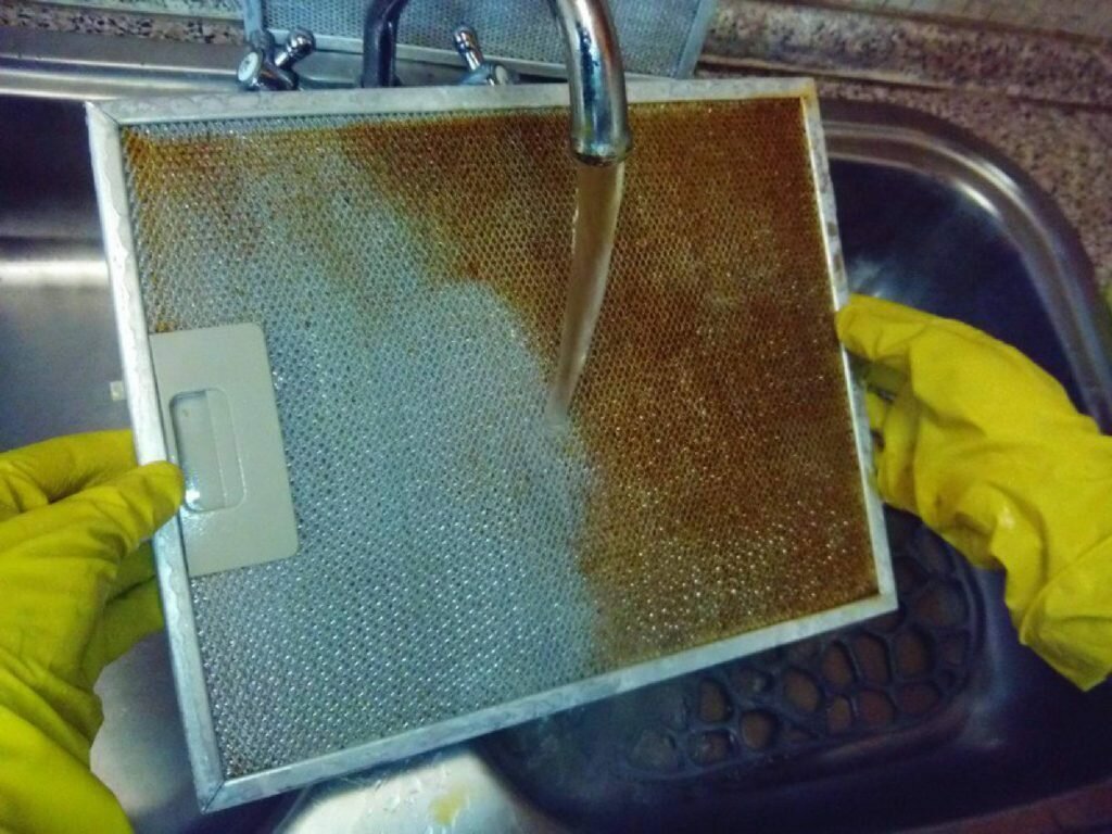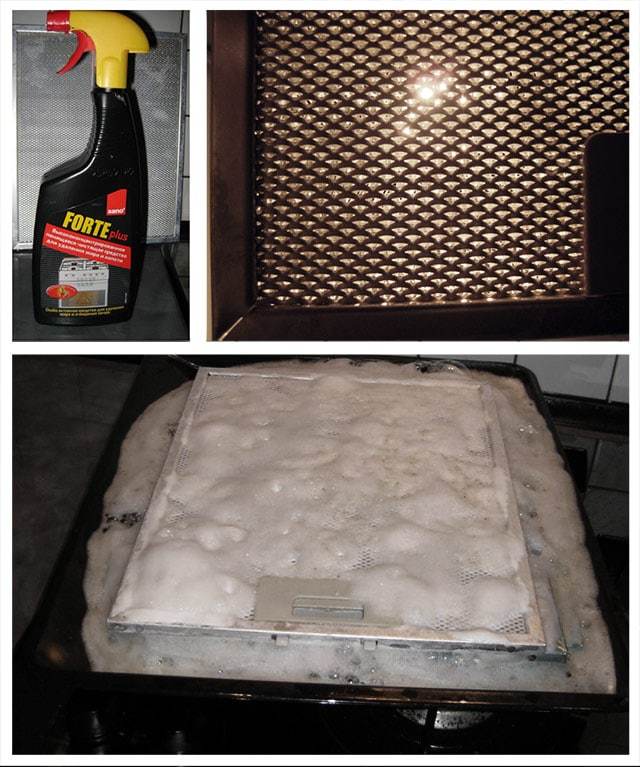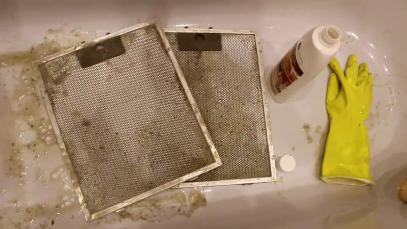 Le processus de nettoyage du filtre à graisse de cette manière implique l'utilisation de gants en caoutchouc, d'un évier en acier inoxydable et d'un cure-pipe. La quantité requise de détergent est versée dans l'évier, le filtre est placé pendant 5 à 10 minutes. Ensuite, la structure est lavée plusieurs fois à l'eau courante (jusqu'à ce que la solution soit complètement éliminée de la surface).