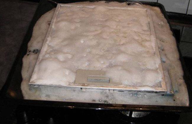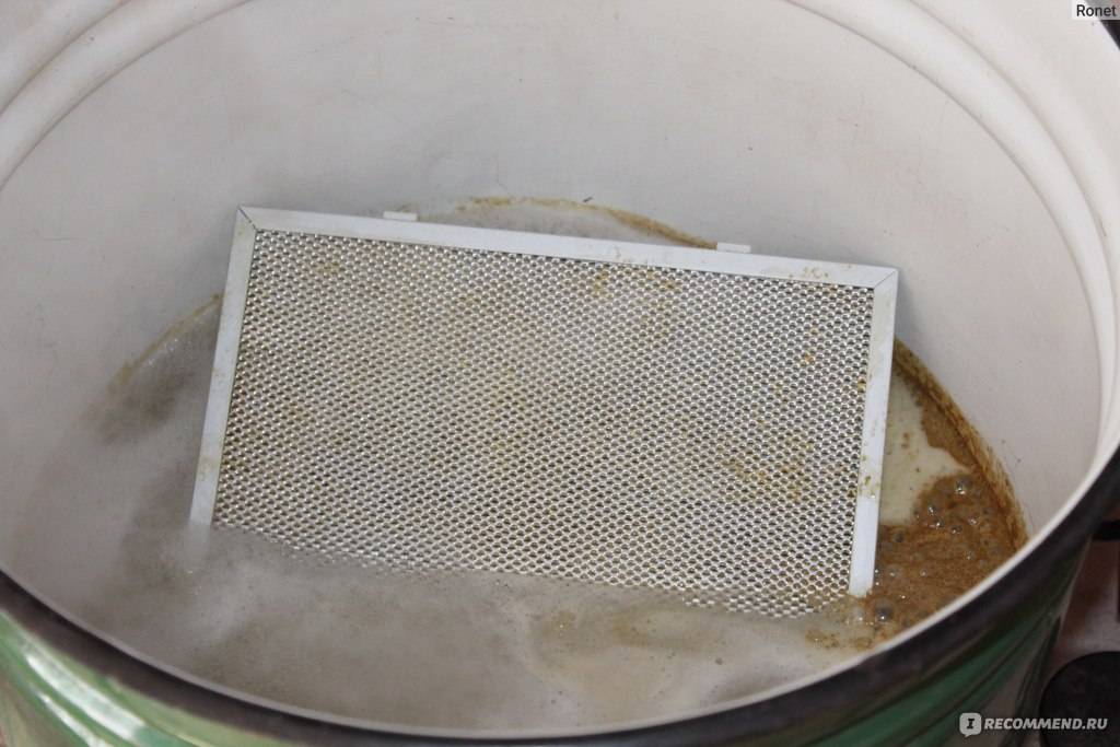 Si cette méthode n'a pas donné de résultats, il ne reste plus qu'à nettoyer le maillage de la hotte en le faisant bouillir. Pour ce faire, de l'eau est aspirée dans une grande casserole, dans laquelle une demi-barre de savon à lessive et quelques cuillères à soupe de bicarbonate de soude sont ajoutées, puis mises en feu et portées à ébullition. Un filtre est placé dans de l'eau bouillante et bouilli pendant 5 à 10 minutes. Après cela, le filtre doit être laissé dans le récipient avec la solution pendant plusieurs heures.
