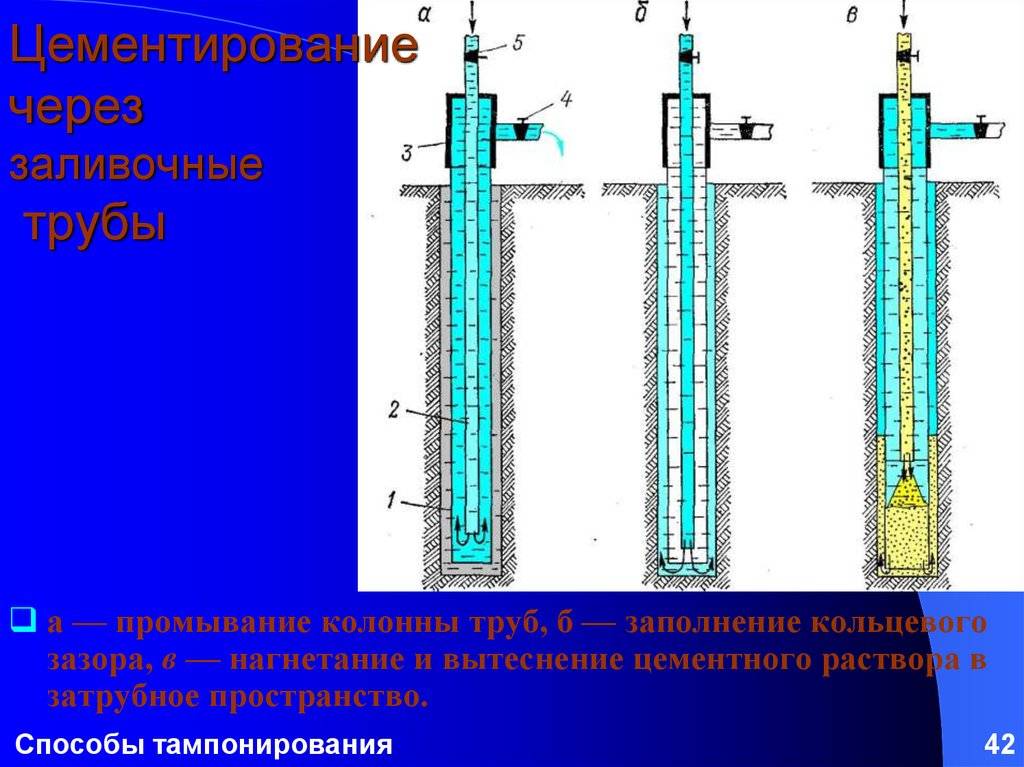 - Ensuite, l'espace annulaire est pompé avec une composition de ciment. Cette opération peut être effectuée par deux méthodes, dont nous discuterons ci-dessous.