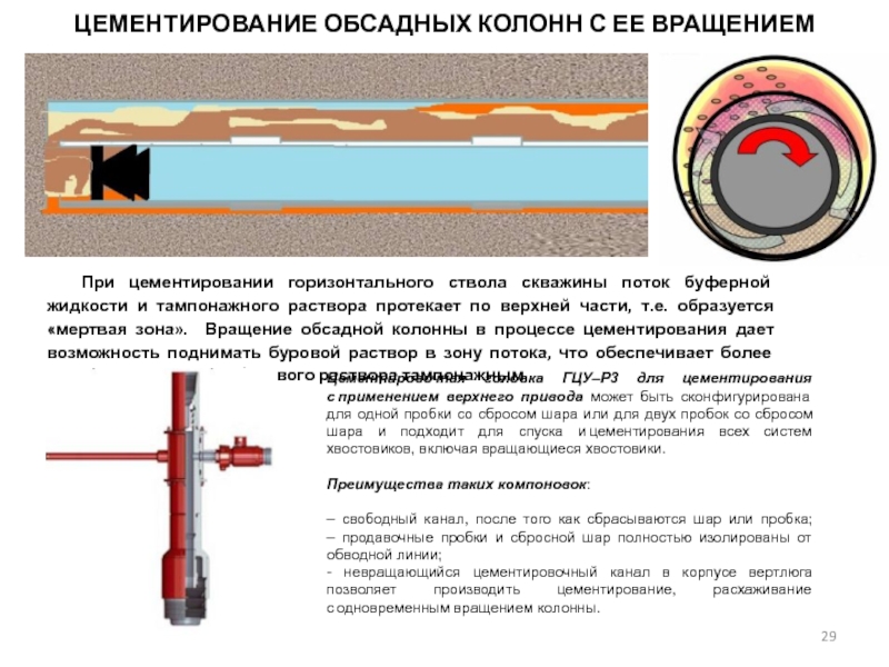 -mise en œuvre des normes et règles de travail développées afin de remplir le plus complètement l'espace annulaire du puits avec du coulis de ciment d'une certaine qualité (au lieu du coulis de forage) dans une zone donnée, en assurant le contact du coulis de ciment - pierre avec le surface OK. et la paroi du puits tout en maintenant l'intégrité des couches.