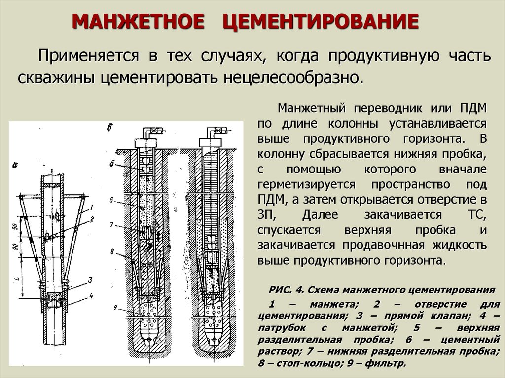 Le processus technologique de cimentation est déterminé par des facteurs géologiques et technologiques.