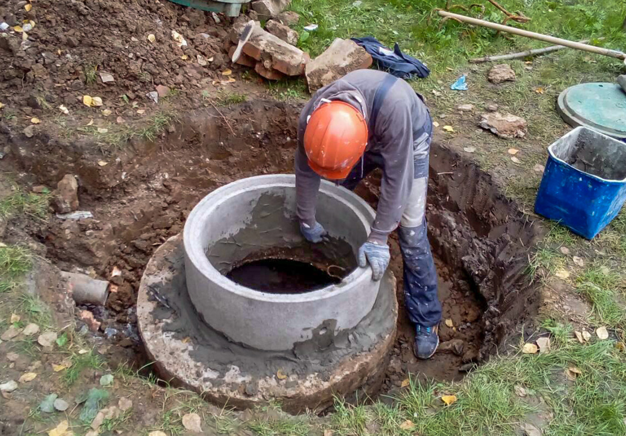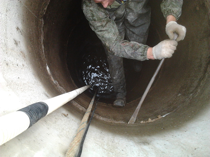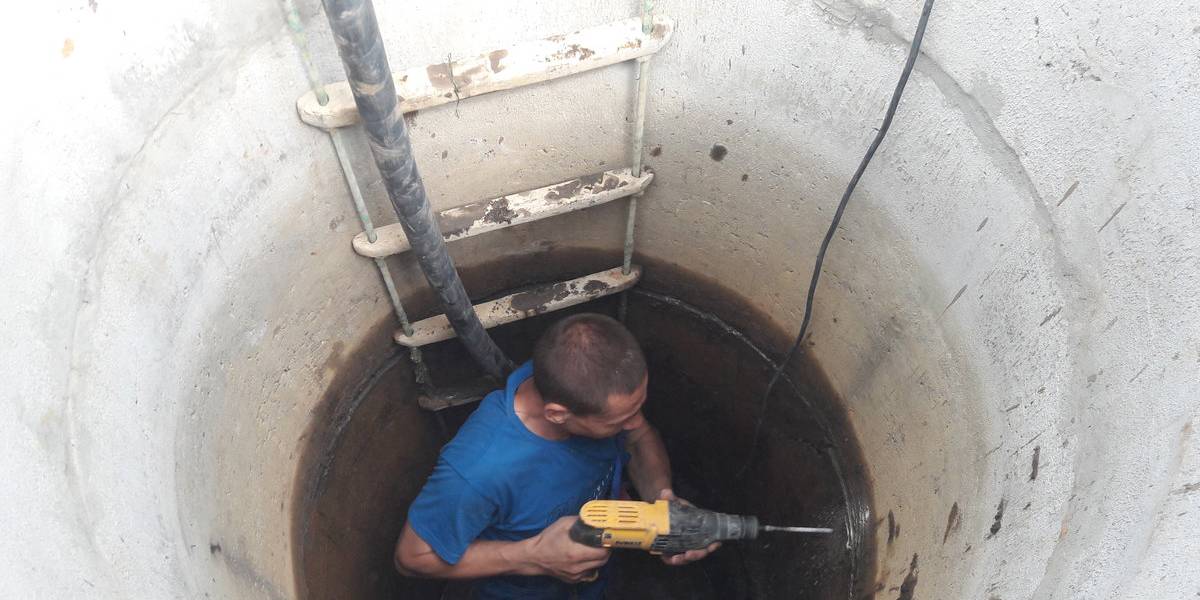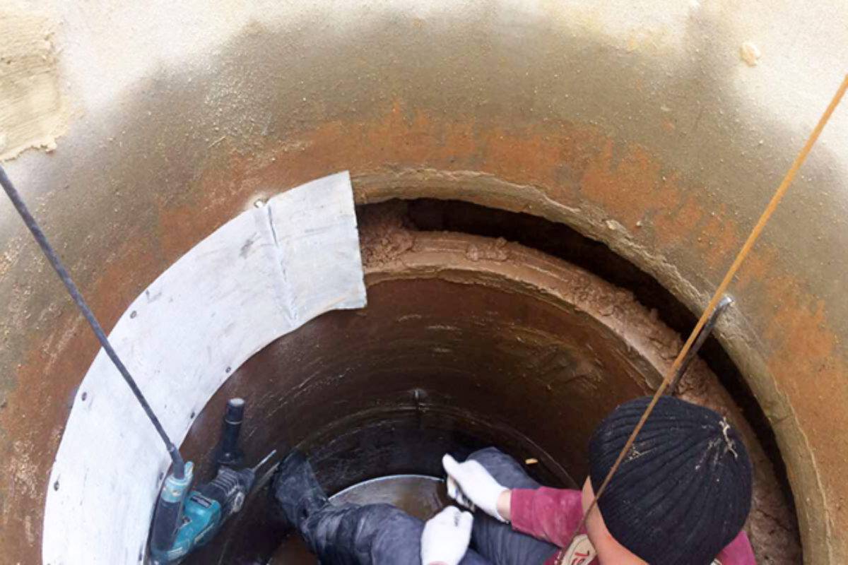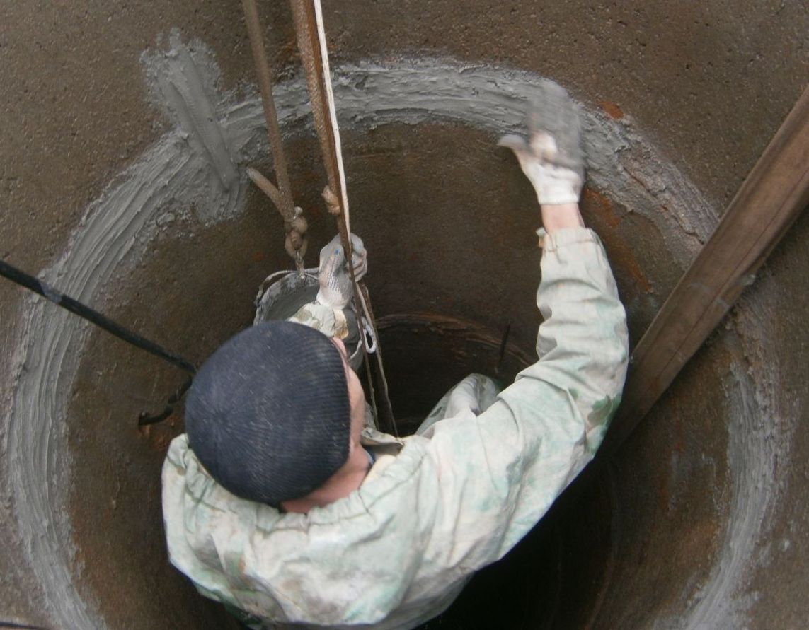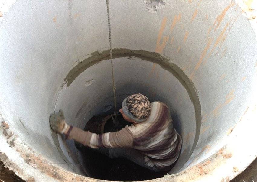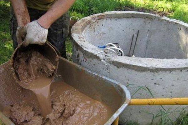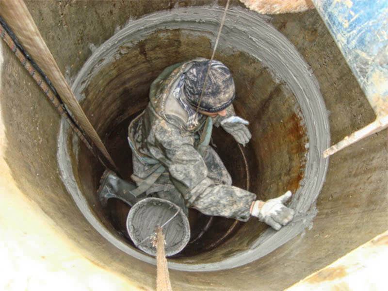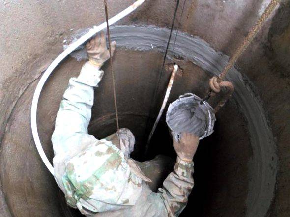 - À l'étape suivante, toutes les fissures et crevasses entre les anneaux de béton sont scellées à l'aide de verre liquide, de ciment et de sable. Si les trous sont grands, des joints hydrauliques sont utilisés pour les sceller. Il est à noter que ces compositions sont relativement coûteuses.