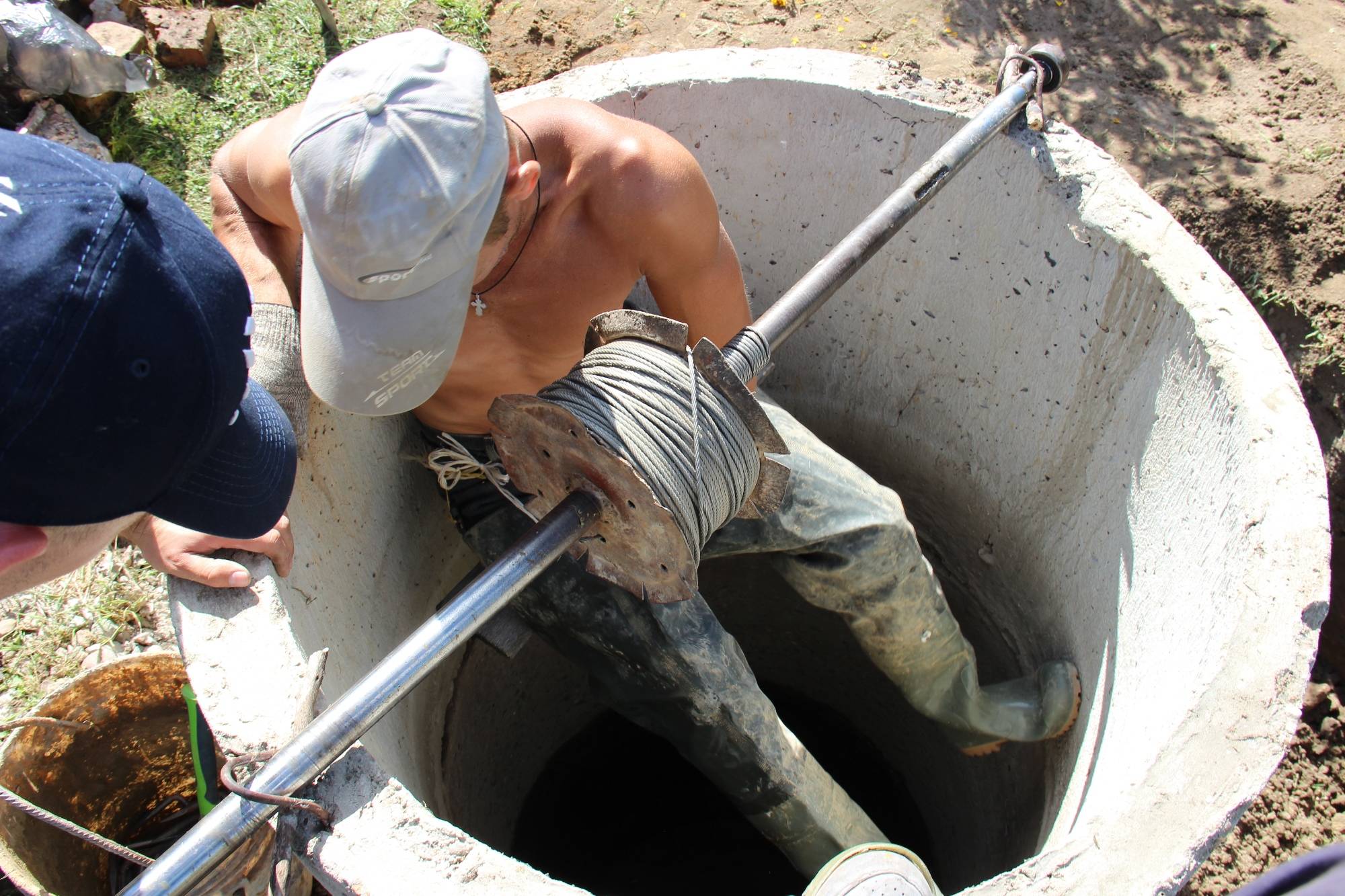 - le nettoyage du puits doit être effectué par au moins trois personnes, car en cas de danger, une personne ne pourra pas retirer l'autre de la mine;