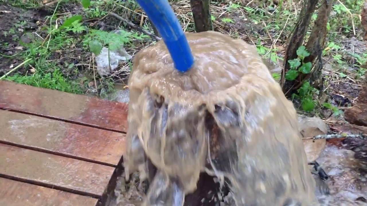 L'eau du premier puits contient des niveaux élevés de contaminants et est imbuvable. Le refus de nettoyer la source conduira à l'envasement. Un pompage professionnel éliminera toutes les particules de sable et de limon de l'aquifère. Le temps minimum requis pour ce processus est de 14 heures et dépend du type de sol.