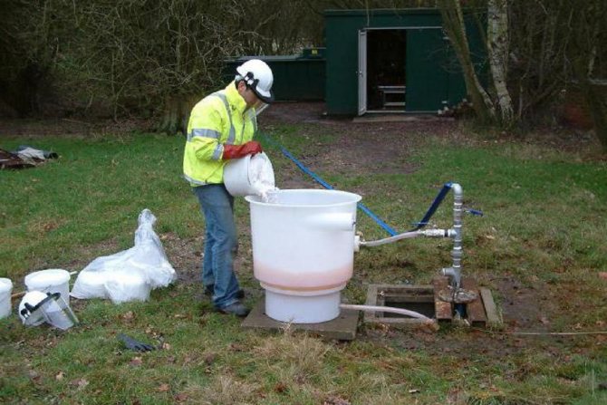 Pour commencer le processus de nettoyage de l'eau d'un puits de vos propres mains, vous devez jeter une épingle et remuer les dépôts de fond. Ensuite, la pompe s'abaisse instantanément, après quoi il est nécessaire de pomper le liquide jusqu'à ce qu'il ressorte propre. Le processus de remise en jeu doit être répété plusieurs fois.