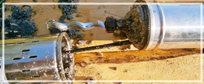 Une pompe à main est utilisée pour faciliter le travail. Avec son aide, il est possible d'apporter de l'eau à l'intérieur de la colonne et d'aspirer la masse de boues contaminées à la surface à travers un tuyau. Gain de temps et d'efforts : vous n'avez pas à soulever manuellement plusieurs dizaines de kilogrammes à la surface. La pompe peut être utilisée après avoir retiré la majeure partie des contaminants avec une écope pour le nettoyage final.