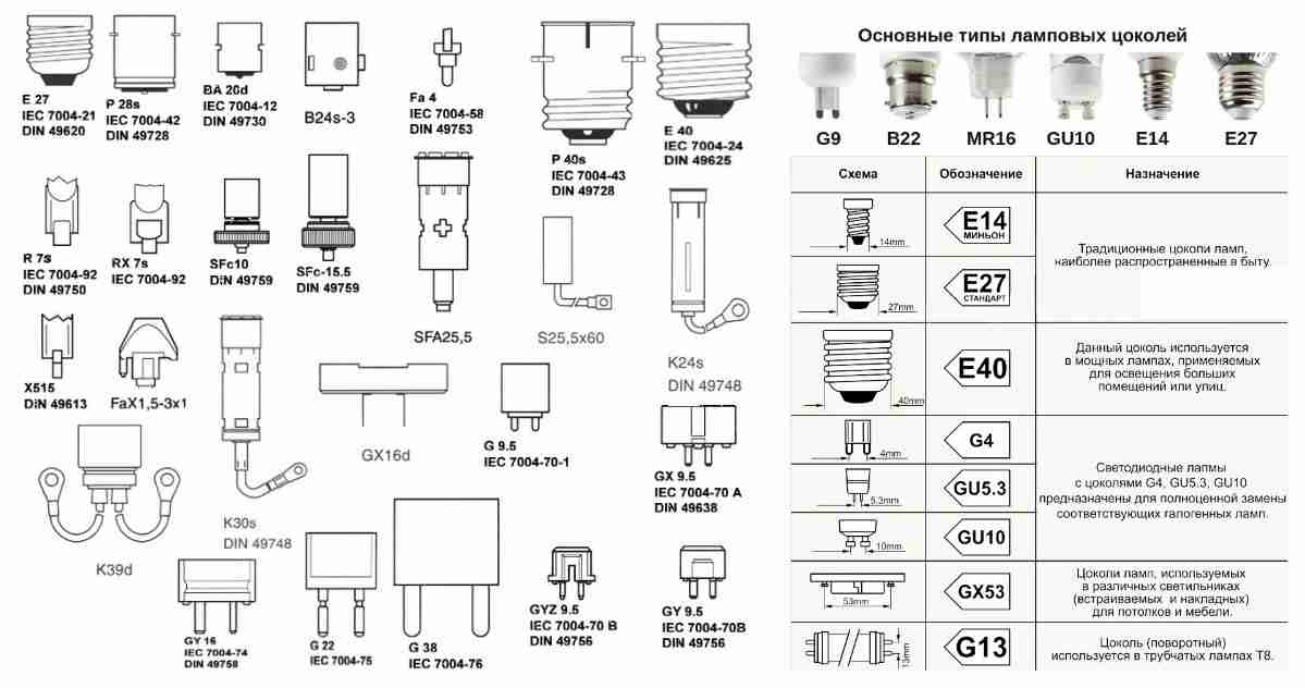 Comme vous pouvez le voir, les types de socles de lampes d'éclairage modernes ont une gamme assez étendue.