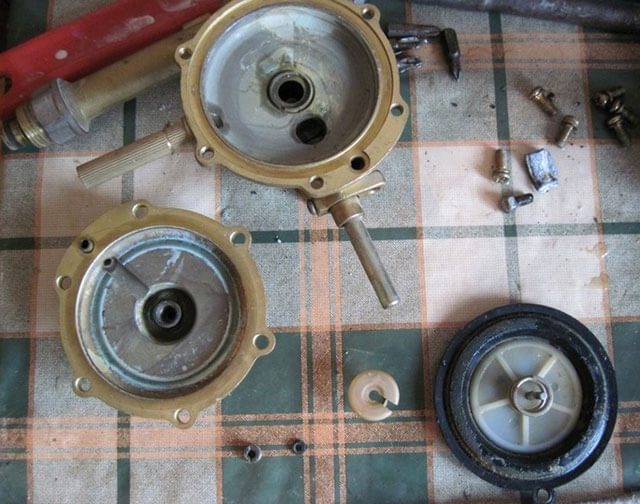 Une autre cause de pression d'eau insuffisante dans la colonne est un filtre obstrué.Pour l'inspecter, il est nécessaire de couper l'alimentation en eau et en gaz avec des vannes, dévisser les écrous, rincer la grille. Si le nettoyage échoue, le filtre devra être remplacé.