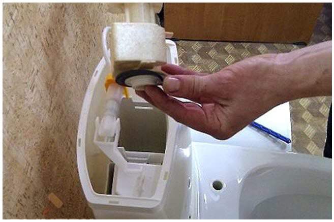 Ensuite, la vis doit être insérée à sa place d'origine depuis l'intérieur du réservoir, et de l'extérieur, mettre un élastique plat, une rondelle et un écrou.