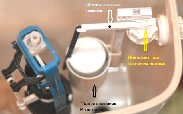 Dans le premier cas, lorsque l'eau déborde simplement à travers les trous technologiques, la cause du défaut peut être un dysfonctionnement du mécanisme de trop-plein ou l'absence d'un tuyau spécial monté sur le tuyau de remplissage.