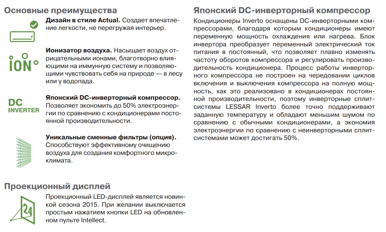 Les climatiseurs de ce type peuvent être recommandés pour l'installation dans les appartements - les résidents apprécieront le fonctionnement "doux" froid et silencieux. Mais s'il y a des surtensions constantes dans la maison, il vaut mieux refuser un tel achat. Et encore une chose: cela ne vaut pas la peine de penser que l'appareil sera rapidement rentabilisé en raison de sa consommation économe en énergie. Selon les experts, une telle période devrait être d'au moins 5 ans - pendant cette période, aucun équipement n'est assuré contre les pannes et les surcharges.