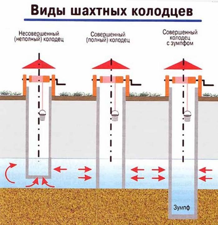 L'agencement d'une telle source peut être fait de vos propres mains. Le processus est le colmatage de la mine avec son accumulation progressive jusqu'à atteindre l'aquifère.La profondeur d'une telle source ne dépasse pas 12 m, ce qui est associé aux capacités d'une pompe de surface.