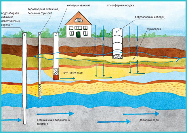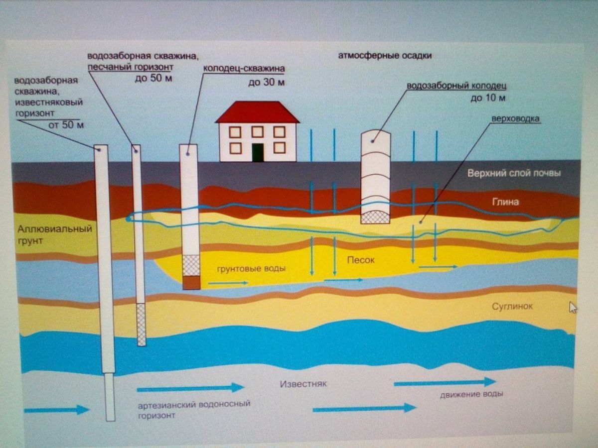 Le résultat de la pollution technogénique était l'entrée d'eaux souterraines non traitées dans des sources à des profondeurs relativement faibles. Une caractéristique des aquifères plus profonds est la protection supplémentaire de l'eau par des couches d'argile. Certes, même dans ce cas, la teneur en eau peut contenir des impuretés de fer et de sel.