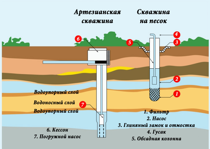 Les puits, en tant qu'ouvrages de prise d'eau, sont conçus pour recueillir l'eau de l'aquifère supérieur. Et les puits sont conçus pour puiser l'eau des horizons sous-jacents, ce qui assure une meilleure qualité et plus d'eau. La pureté de l'eau dépend de l'aquifère dans lequel un puits est creusé ou un puits est foré. En termes de qualité de l'eau, il est difficile de dire ce qui est mieux qu'un puits ou un puits, car il n'y a pas d'eau absolument propre ni dans les puits ni dans les puits.