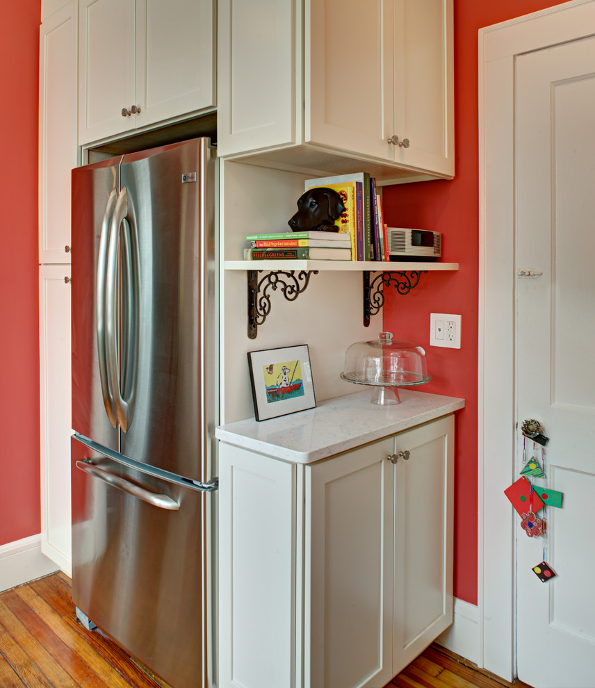 Un réfrigérateur global n'est pas si facile à intégrer dans une petite cuisine d'angle, mais c'est possible si vous abordez la question de manière rationnelle.