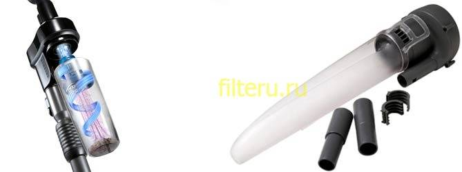 Pour les appareils avec filtre cyclone, le principe de fonctionnement est légèrement différent. En raison de la conception spéciale du dépoussiéreur, un petit vortex puissant se forme, qui disperse la poussière le long des parois du réservoir et l'empêche de retourner dans le tuyau.