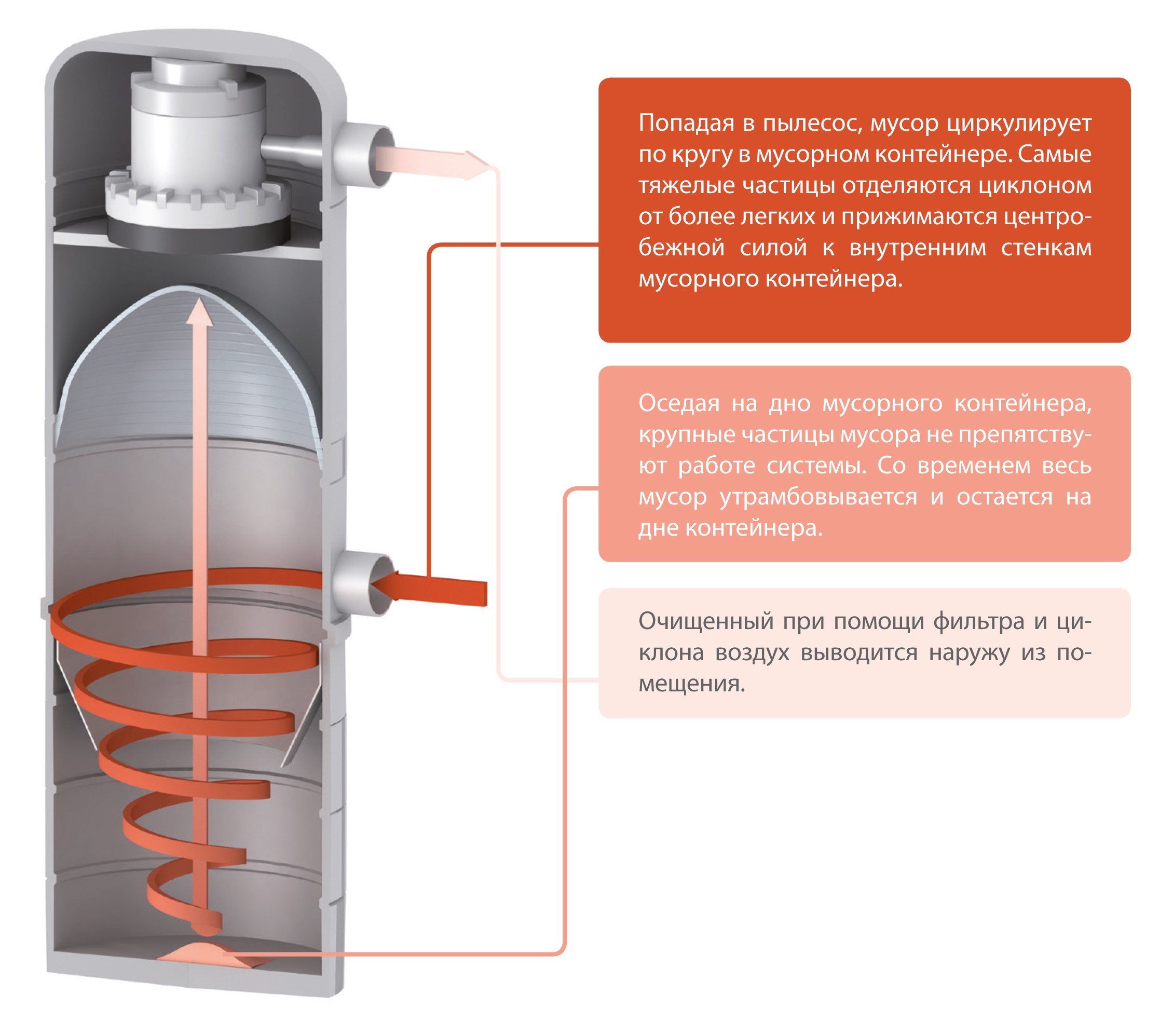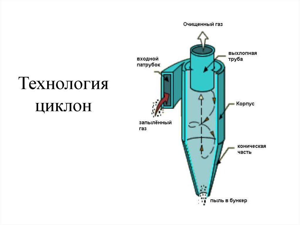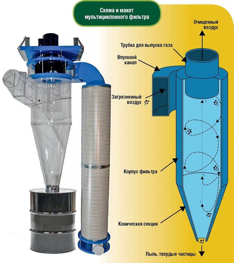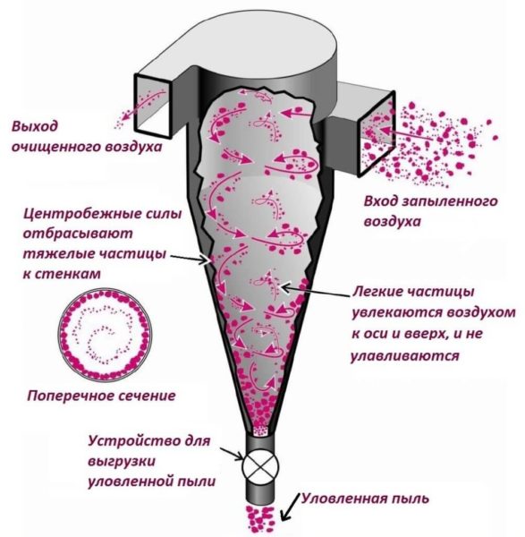 Le mouvement en spirale de l'air qui forme un filtre cyclone n'est pas utilisé uniquement dans les appareils électroménagers. Les cyclones sont utilisés dans les installations industrielles des entreprises pour collecter des substances en poudre et la même poussière.
