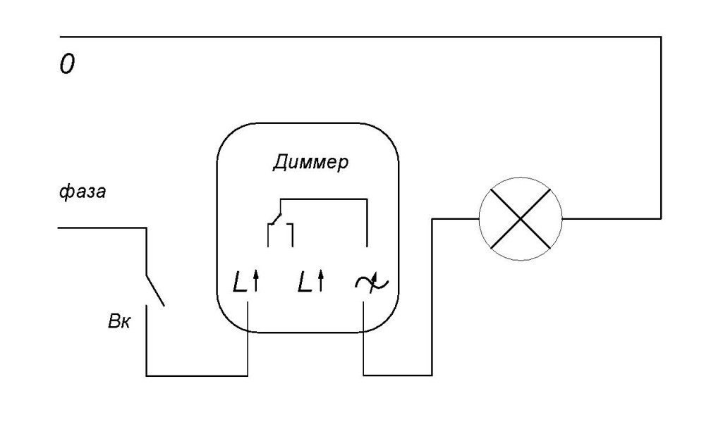 Le plus souvent, les gradateurs monoblocs sont connectés indépendamment. Ils sont mis à la place d'un interrupteur. Avec un réseau monophasé, le schéma de raccordement est le même que sur un interrupteur classique - en série avec la charge - en coupure de phase. C'est une nuance très importante. Les gradateurs sont placés uniquement dans l'espace du fil de phase. Si vous connectez le gradateur de manière incorrecte (dans l'espace neutre), le circuit électronique tombera en panne. Afin de ne pas se tromper, avant l'installation, il est nécessaire de déterminer exactement lequel des fils est la phase et lequel est le neutre (zéro).