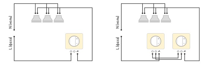 Une variété de façons de connecter un gradateur vous permet de choisir la meilleure option pour chaque pièce, en tenant compte des caractéristiques de son fonctionnement.