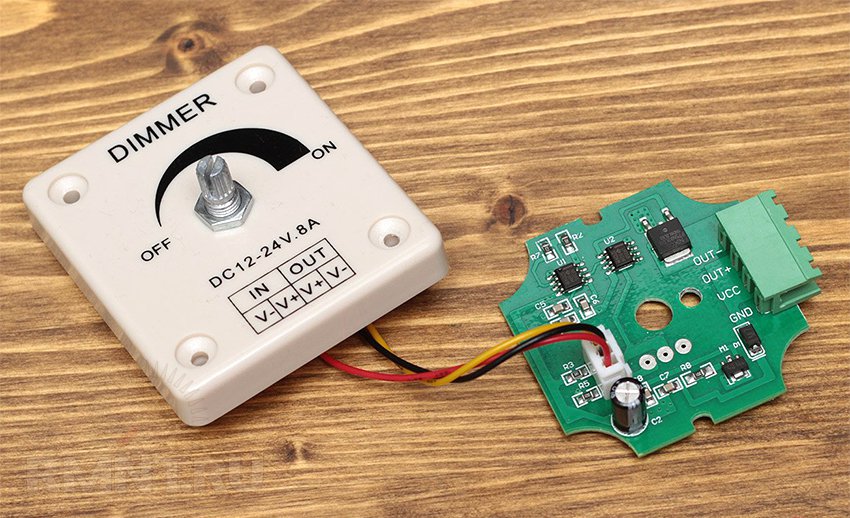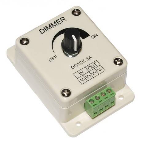 Pour contrôler le fonctionnement d'un tel appareil, on utilise un gradateur pour une bande de LED, qui est inclus dans le circuit d'alimentation de la source lumineuse et peut contrôler son fonctionnement à la fois dans un mode donné et à l'aide d'une télécommande.
