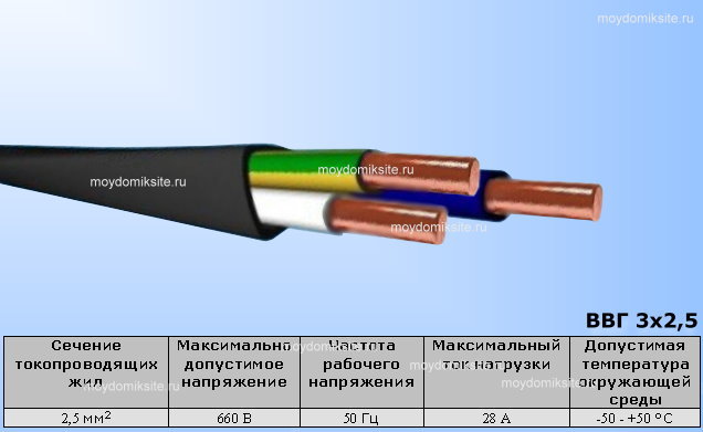 Dans la langue des automobilistes électriques VVG, le décodage ressemble à ceci: V - vinyle, V - vinyle, G - nu. De plus, les lettres ng signifient que ce câble ne supporte pas la combustion lors de la pose en groupe. C'est un paramètre très important si vous souhaitez poser le câble dans des endroits avec une probabilité d'incendie assez élevée. La sécurité passe avant tout. Comme il n'y a pas de lettre A dans le marquage décrit, le câble est constitué de conducteurs en cuivre. Tableau 1. Décodage du marquage VVG du câble