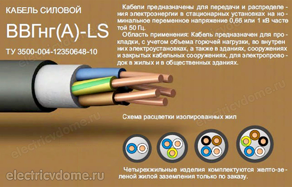 - Pour un usage industriel, un produit avec l'abréviation VVGP ng-ls convient, qui a une résistance et une flexibilité accrues, dont la couche isolante externe est constituée de polymères non combustibles avec un degré élevé de résistance à l'usure.