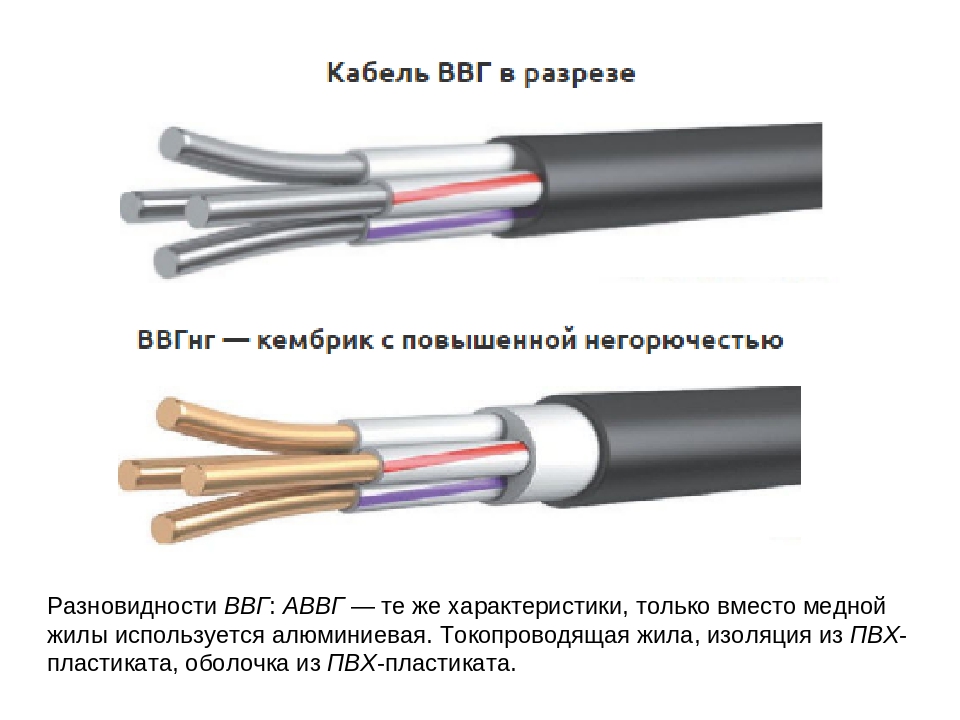 Sur la base de ce qui précède, nous pouvons déchiffrer l'abréviation VVGng comme suit : l'isolation des âmes conductrices est en chlorure de polyvinyle (B), l'isolation de la gaine extérieure est également en chlorure de polyvinyle (B), il y a une protection spéciale couche, il n'y a pas d'armure (G).