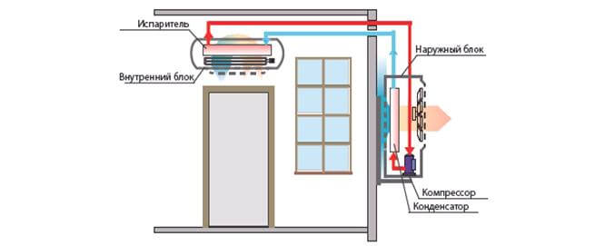 Le schéma de fonctionnement de l'appareil prévoit la présence d'une unité intérieure située à l'intérieur du bâtiment, où il est nécessaire de maintenir les paramètres d'air souhaités.