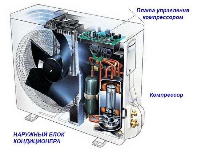 Dans les modèles d'onduleur, l'unité de commande est située presque entièrement dans la partie externe de l'appareil. Mais s'il n'y a pas d'onduleur, l'électronique est généralement placée dans l'unité intérieure. Cette partie comprend généralement :