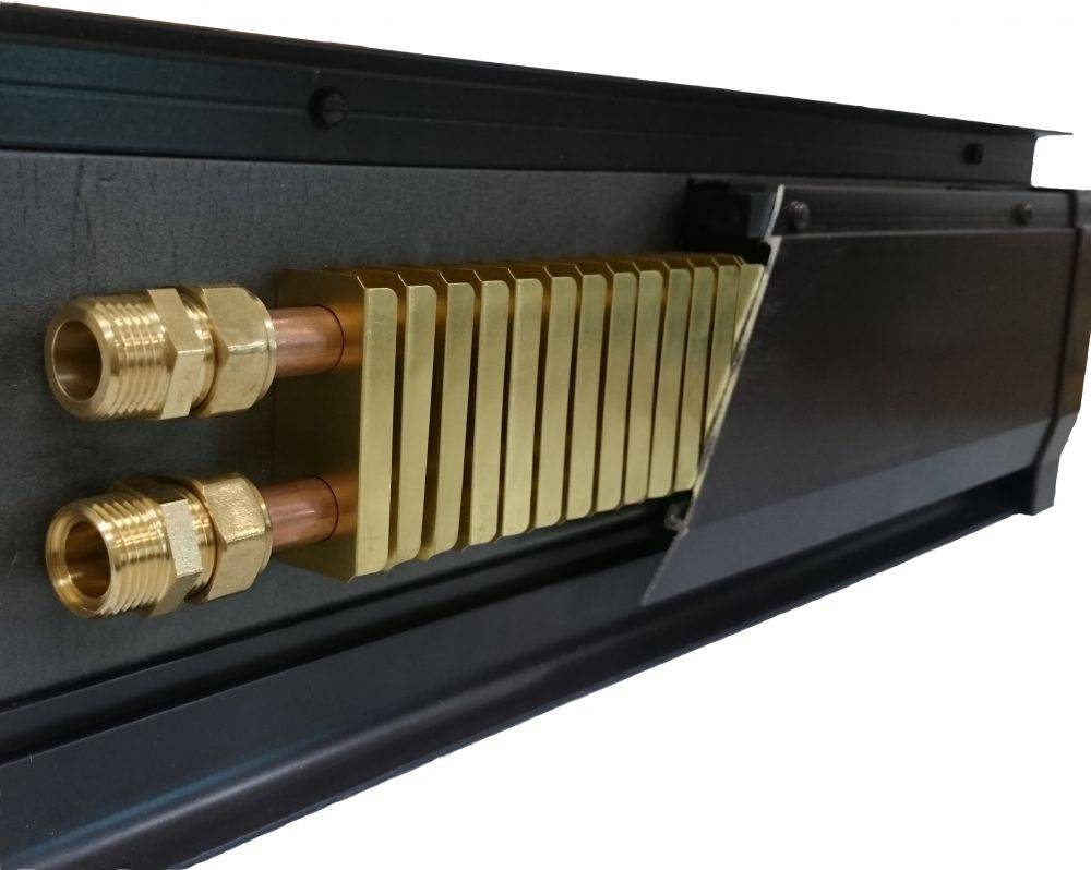Un transfert de chaleur efficace est assuré par une construction en cuivre-aluminium et une fente dans le conduit pour l'échange d'air. Le chauffage de la pièce se produit en quelques minutes, grâce à la loi de la thermodynamique.