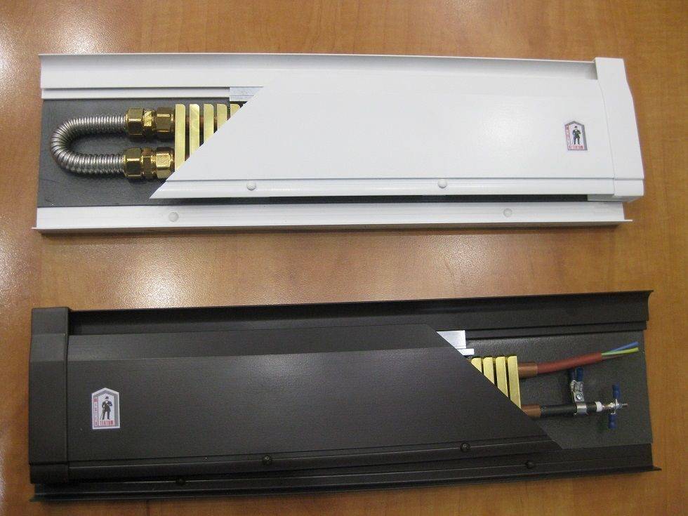 Quant au principe de fonctionnement du chauffage par plinthes, ici tout est pareil qu'avec les radiateurs. Les courants d'air froid pénètrent dans la grille de ventilation du socle et se réchauffent, après quoi ils montent, dégageant de la chaleur dans la pièce.