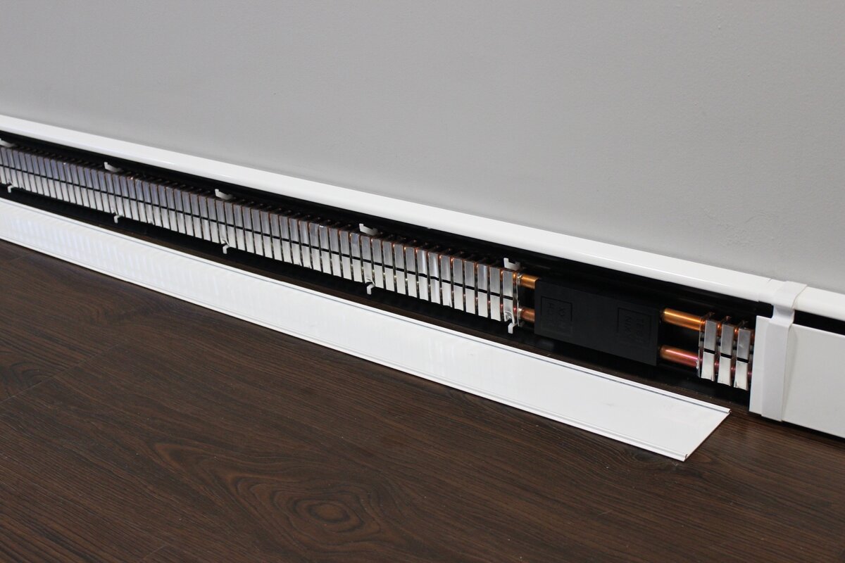 Voilà à quoi ça ressemble quand c'est fait - Après des tests réussis, des couvertures décoratives sont installées, le système de chauffage par plinthes est prêt à fonctionner.