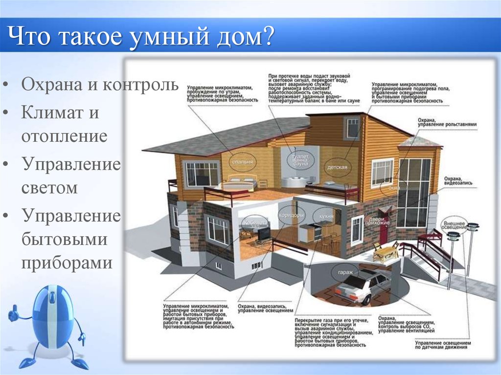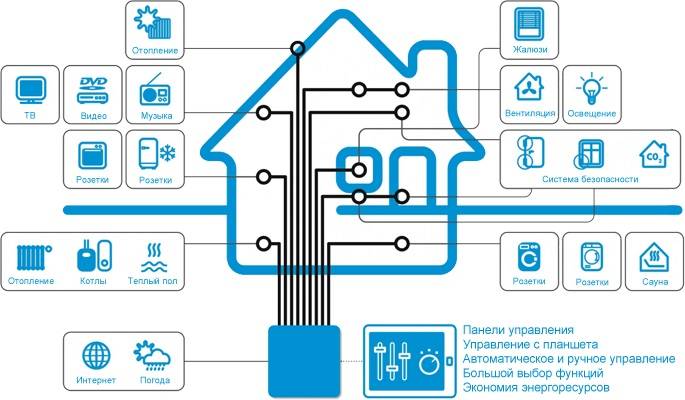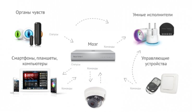Un contrôleur de maison intelligente est un appareil qui gère tous les consommateurs, appareils et envoie également un rapport au propriétaire sur l'état de ces consommateurs. Il est guidé par des capteurs de température, d'air et de lumière pour contrôler les systèmes d'éclairage, de chauffage et de climatisation. Peut être programmé pour effectuer diverses actions dans le temps, selon un calendrier. En plus du mode hors ligne, le contrôleur peut être contacté via une interface spéciale (réseau informatique, opérateur mobile ou réseau radio) et contrôler les appareils manuellement.