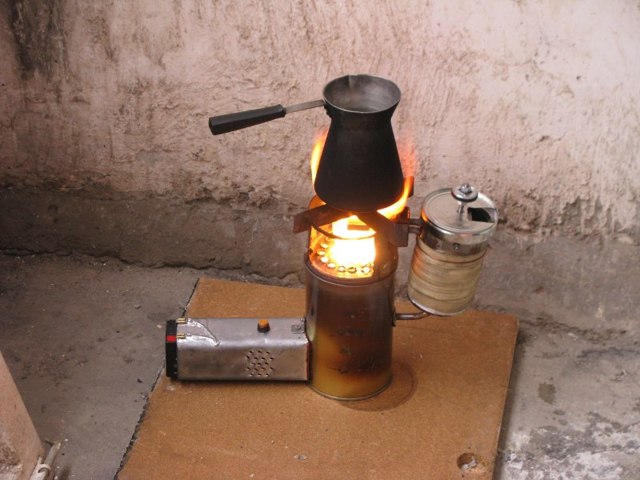 1. Petit réchaud à combustible liquide. Il s'agit d'un petit réservoir de carburant et d'un réservoir qui lui est relié selon le principe des vases communicants, plus un simple brûleur diesel.Ils sont utilisés comme réchauds de camping pour la cuisine et le chauffage, et peuvent servir d'option automobile.