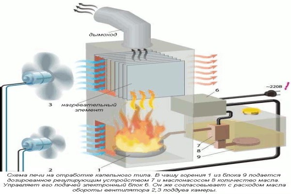 4. Four goutte à goutte. D'après le nom de l'unité, il devient clair qu'elle dispose d'un système de goutte à goutte pour fournir du carburant diesel à la chambre de combustion. Ce four est facile à utiliser et prêt à l'emploi en quelques minutes après avoir été déballé.