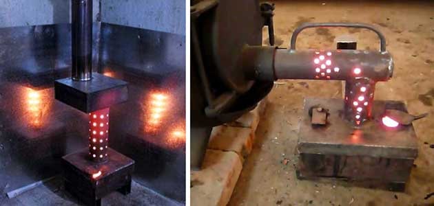De petits trous sont faits dans toutes les surfaces latérales du brûleur, il est préférable de les disposer en 5 rangées.